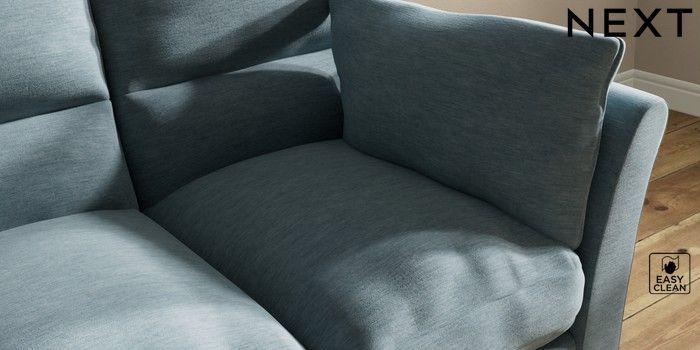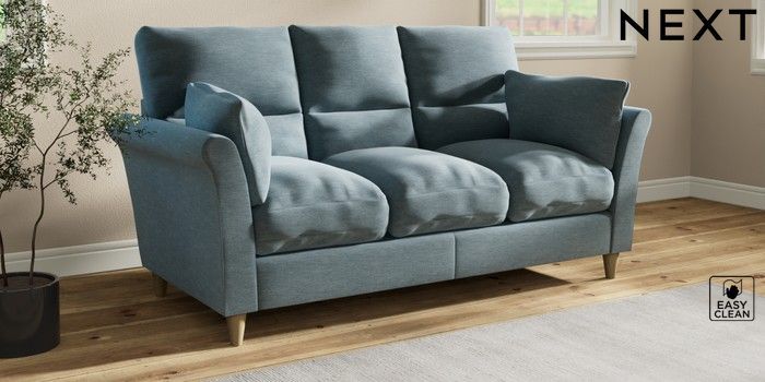 7.3.1 Buy Hartley Highback Relaxed Sit 3 Cushion 3 Seater Sofa Fine Chenille Easy Clean Mid Blue Low Conical - Light from the Next UK online shop