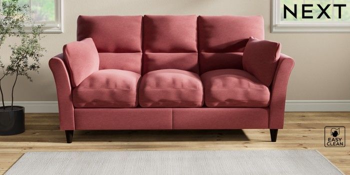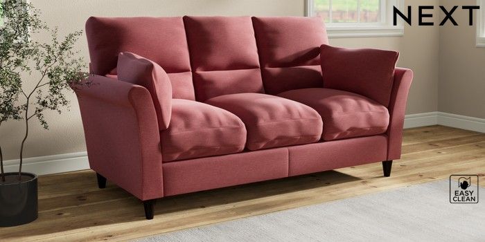 7.3.1 Buy Hartley Highback Relaxed Sit 3 Cushion 3 Seater Sofa Fine Chenille Easy Clean Mid Pink Low Conical - Dark from the Next UK online shop