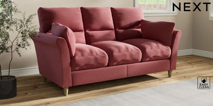 7.3.1 Buy Hartley Highback Relaxed Sit 3 Cushion 3 Seater Sofa Fine Chenille Easy Clean Mid Pink Low Conical - Light from the Next UK online shop