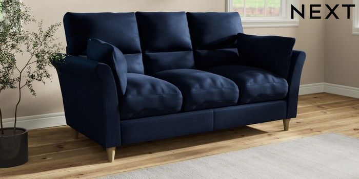 7.3.1 Buy Hartley Highback Relaxed Sit 3 Cushion 3 Seater Sofa Luxe Chenille Navy Blue Low Conical - Light from the Next UK online shop