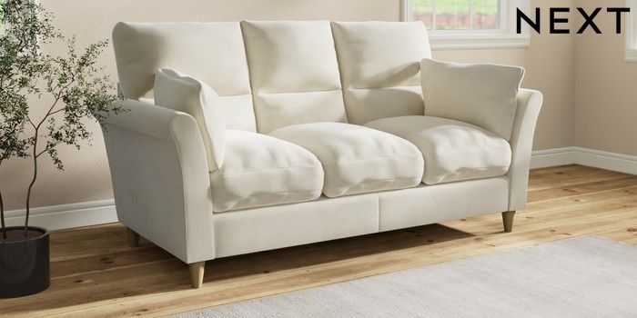 7.3.8 Buy Hartley Highback Relaxed Sit 3 Cushion 3 Seater Sofa Luxe Chenille Oyster Low Conical - Light from the Next UK online shop