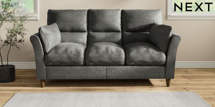7.2.10 Buy Hartley Highback Relaxed Sit 3 Cushion 3 Seater Sofa Plush Chenille Dark Grey Low Conical - Mid from the Next UK online shop Click here to use our accessible website