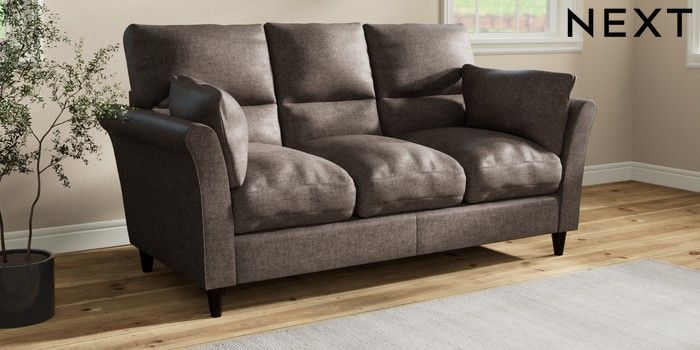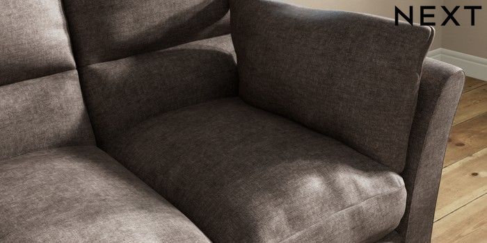 7.3.1 Buy Hartley Highback Relaxed Sit 3 Cushion 3 Seater Sofa Plush Chenille Mink Brown Low Conical - Dark from the Next UK online shop
