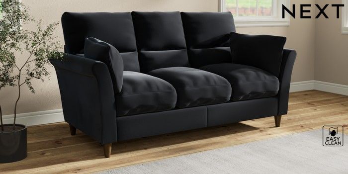 7.3.1 Buy Hartley Highback Relaxed Sit 3 Cushion 3 Seater Sofa Plush Velvet Easy Clean Charcoal Grey Low Conical - Mid from the Next UK online shop Click here to use our accessible website