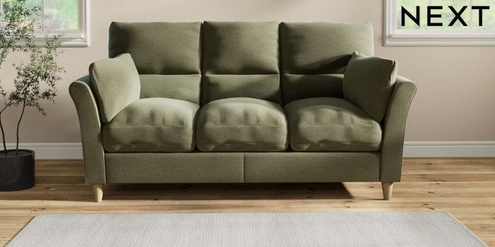 7.2.10 Buy Hartley Highback Relaxed Sit 3 Cushion 3 Seater Sofa Ripple Chenille Mid Moss Green Low Conical - Light from the Next UK online shop Click here to use our accessible website