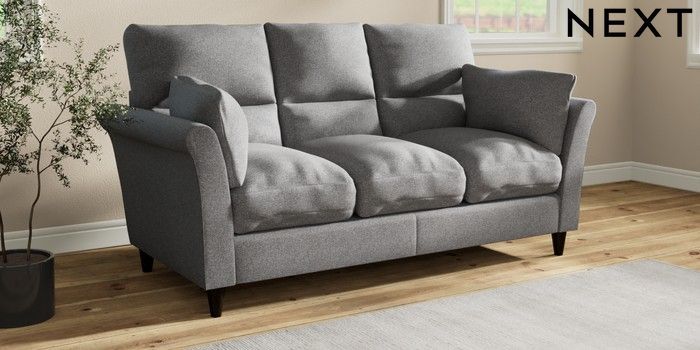7.3.1 Buy Hartley Highback Relaxed Sit 3 Cushion 3 Seater Sofa Studio Chenille Mid Grey Low Conical - Dark from the Next UK online shop