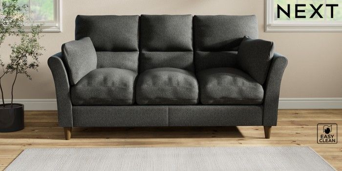 7.3.1 Buy Hartley Highback Relaxed Sit 3 Cushion 3 Seater Sofa Tweedy Blend Easy Clean Charcoal Grey Low Conical - Mid from the Next UK online shop Click here to use our accessible website