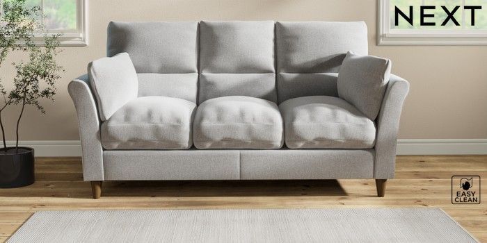 7.3.1 Buy Hartley Highback Relaxed Sit 3 Cushion 3 Seater Sofa Tweedy Blend Easy Clean Light Silver Grey Low Conical - Mid from the Next UK online shop Click here to use our accessible website