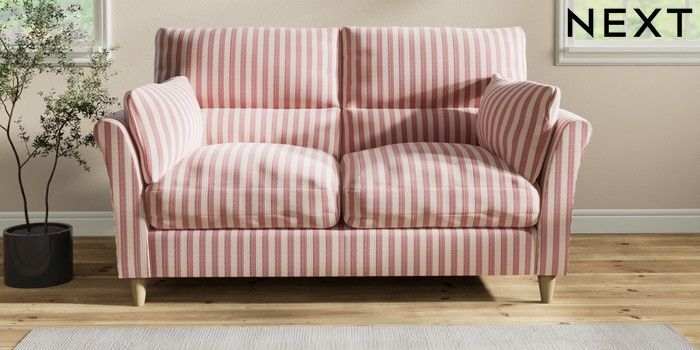 7.2.6 Buy Hartley Highback Relaxed Sit 3 Seater Small Sofa Bold Chenille Stripe Dark Pink Low Conical - Light from the Next UK online shop Click here to use our accessible website