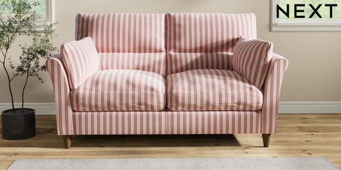 7.2.6 Buy Hartley Highback Relaxed Sit 3 Seater Small Sofa Bold Chenille Stripe Dark Pink Low Conical - Mid from the Next UK online shop Click here to use our accessible website