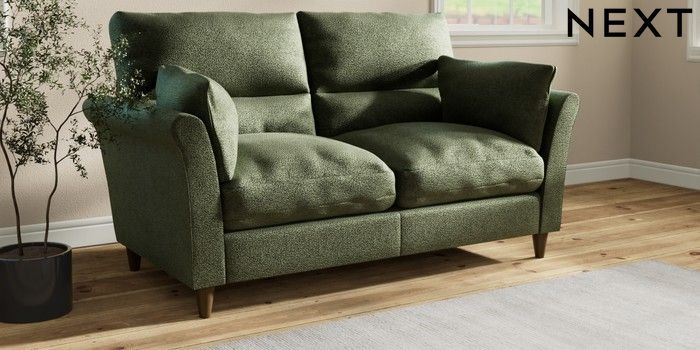 7.3.1 Buy Hartley Highback Relaxed Sit 3 Seater Small Sofa Boucle Chenille Dark Moss Green Low Conical - Mid from the Next UK online shop