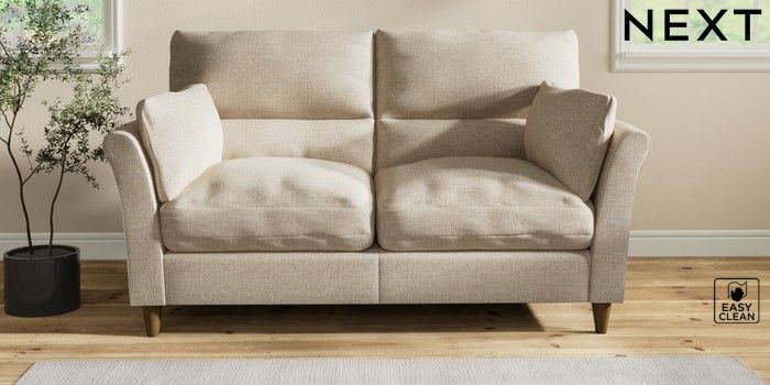 7.3.1 Buy Hartley Highback Relaxed Sit 3 Seater Small Sofa Boucle Weave Easy Clean Dark Natural Low Conical - Mid from the Next UK online shop Click here to use our accessible website