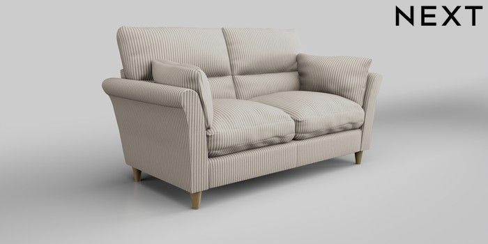 6.12.1 Buy Hartley Highback Relaxed Sit 3 Seater Small Sofa Chenille Stripe Natural Low Conical - Light from the Next UK online shop Click here to use our accessible website