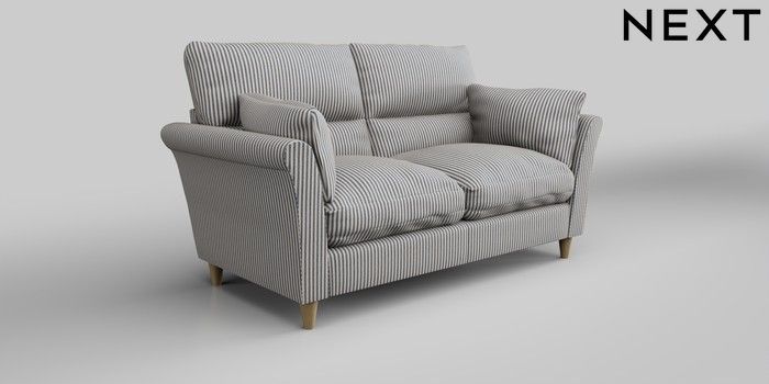 6.12.1 Buy Hartley Highback Relaxed Sit 3 Seater Small Sofa Chenille Stripe Slate Blue Low Conical - Light from the Next UK online shop Click here to use our accessible website