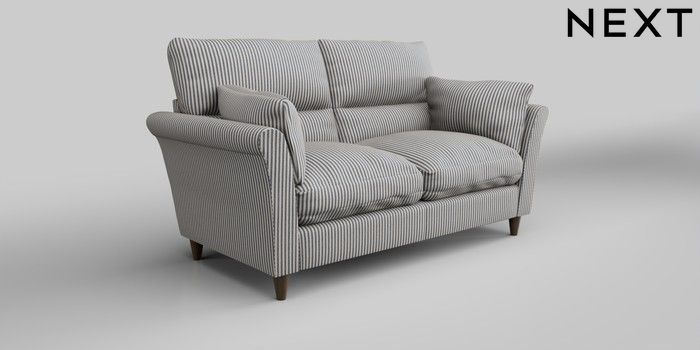 6.12.1 Buy Hartley Highback Relaxed Sit 3 Seater Small Sofa Chenille Stripe Slate Blue Low Conical - Mid from the Next UK online shop Click here to use our accessible website