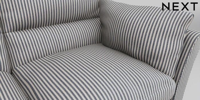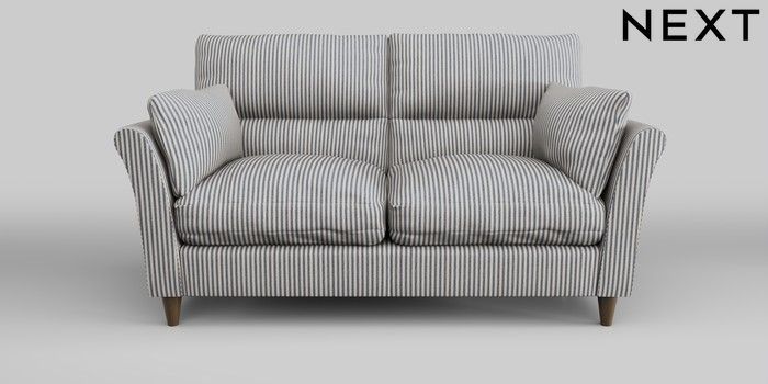 7.0.3 Buy Hartley Highback Relaxed Sit 3 Seater Small Sofa Chenille Stripe Slate Blue Low Conical - Mid from the Next UK online shop Click here to use our accessible website
