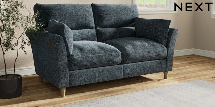 7.3.1 Buy Hartley Highback Relaxed Sit 3 Seater Small Sofa Chunky Chenille Dark Navy Blue Low Conical - Light from the Next UK online shop