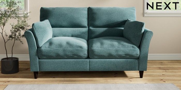 7.2.10 Buy Hartley Highback Relaxed Sit 3 Seater Small Sofa Chunky Chenille Mid Teal Green Low Conical - Dark from the Next UK online shop Click here to use our accessible website