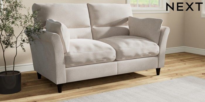 7.3.1 Buy Hartley Highback Relaxed Sit 3 Seater Small Sofa Chunky Chenille Oyster Low Conical - Dark from the Next UK online shop