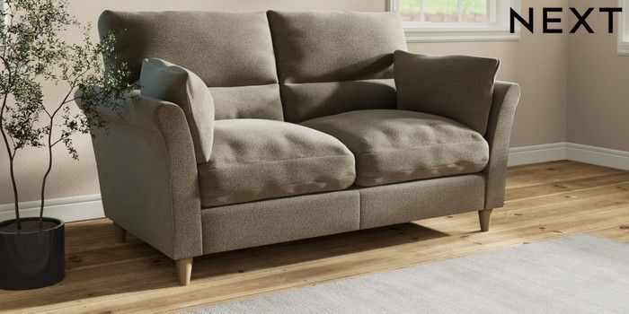 7.3.1 Buy Hartley Highback Relaxed Sit 3 Seater Small Sofa Chunky Marl Light Olive Green Low Conical - Light from the Next UK online shop