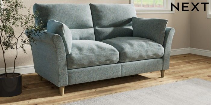 7.3.1 Buy Hartley Highback Relaxed Sit 3 Seater Small Sofa Chunky Marl Mid Blue Low Conical - Light from the Next UK online shop