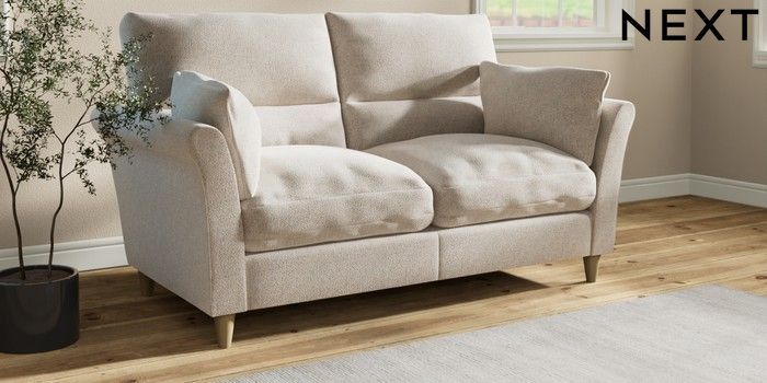 7.3.1 Buy Hartley Highback Relaxed Sit 3 Seater Small Sofa Chunky Marl Oyster Low Conical - Light from the Next UK online shop