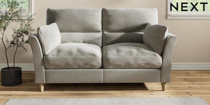7.2.10 Buy Hartley Highback Relaxed Sit 3 Seater Small Sofa Chunky Texture Dove Low Conical - Light from the Next UK online shop Click here to use our accessible website