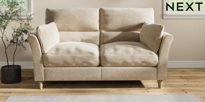7.2.10 Buy Hartley Highback Relaxed Sit 3 Seater Small Sofa Chunky Weave Cream Low Conical - Light from the Next UK online shop Click here to use our accessible website