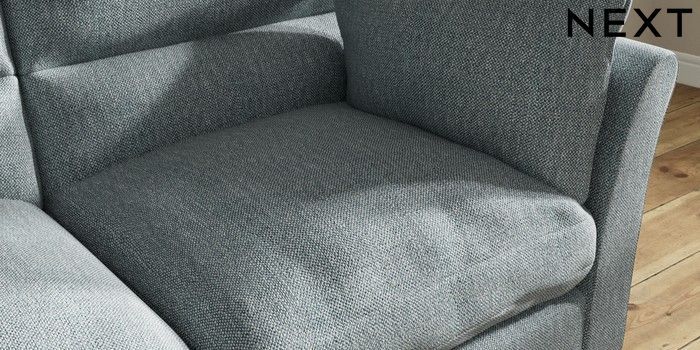 7.3.1 Buy Hartley Highback Relaxed Sit 3 Seater Small Sofa Chunky Weave Mid Blue Low Conical - Light from the Next UK online shop