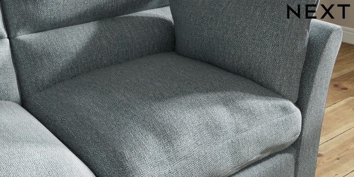 7.3.1 Buy Hartley Highback Relaxed Sit 3 Seater Small Sofa Chunky Weave Mid Blue Low Conical - Mid from the Next UK online shop