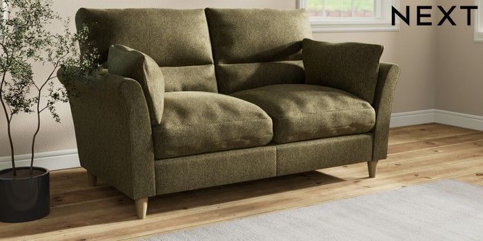 7.3.1 Buy Hartley Highback Relaxed Sit 3 Seater Small Sofa Cotswold Chenille Dark Green Low Conical - Light from the Next UK online shop