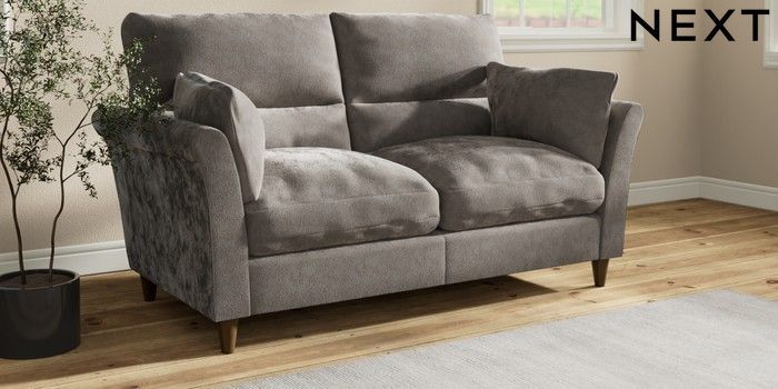 7.3.1 Buy Hartley Highback Relaxed Sit 3 Seater Small Sofa Distressed Velour French Grey Low Conical - Mid from the Next UK online shop