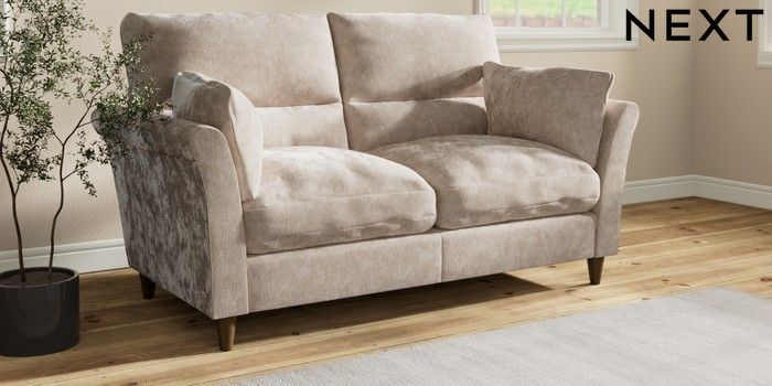 7.3.1 Buy Hartley Highback Relaxed Sit 3 Seater Small Sofa Distressed Velour Mid Natural Low Conical - Mid from the Next UK online shop