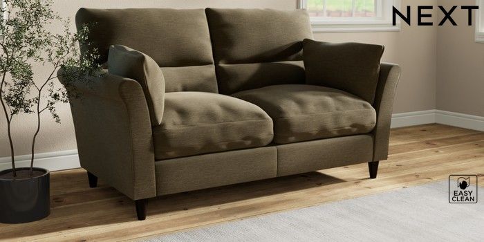 7.3.1 Buy Hartley Highback Relaxed Sit 3 Seater Small Sofa Fine Chenille Easy Clean Dark Moss Green Low Conical - Dark from the Next UK online shop
