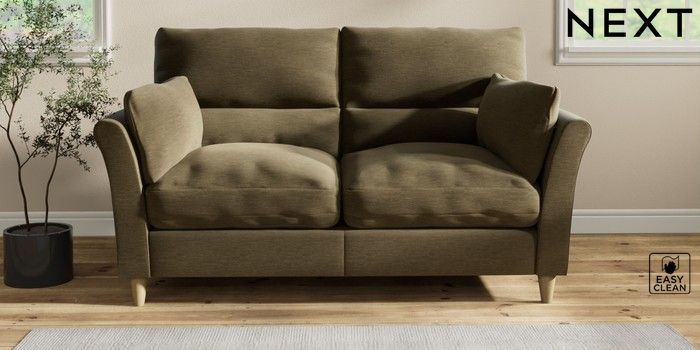 7.2.10 Buy Hartley Highback Relaxed Sit 3 Seater Small Sofa Fine Chenille Easy Clean Dark Moss Green Low Conical - Light from the Next UK online shop Click here to use our accessible website