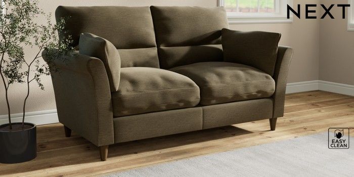 7.3.1 Buy Hartley Highback Relaxed Sit 3 Seater Small Sofa Fine Chenille Easy Clean Dark Moss Green Low Conical - Mid from the Next UK online shop
