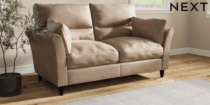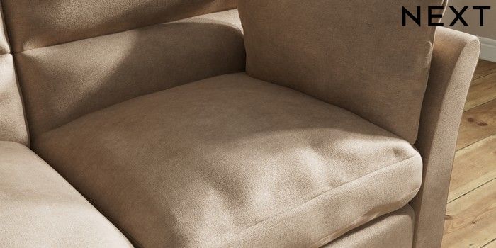 7.3.1 Buy Hartley Highback Relaxed Sit 3 Seater Small Sofa Luxe Chenille Mid Camel Beige Low Conical - Dark from the Next UK online shop