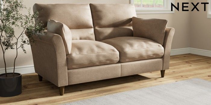 7.3.1 Buy Hartley Highback Relaxed Sit 3 Seater Small Sofa Luxe Chenille Mid Camel Beige Low Conical - Mid from the Next UK online shop