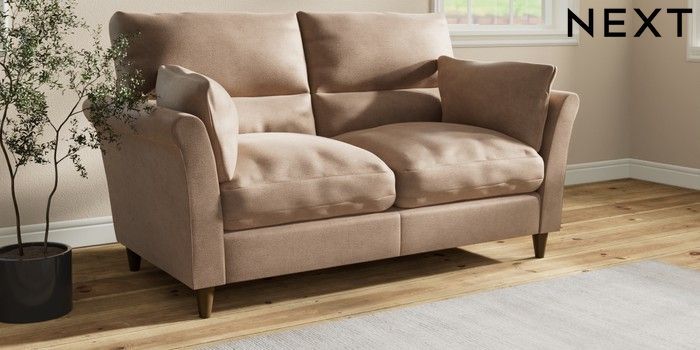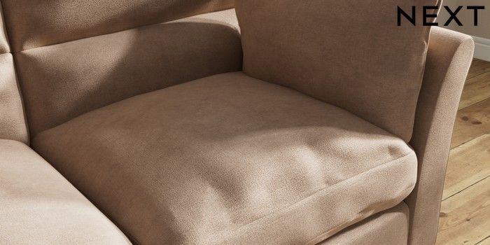 7.3.1 Buy Hartley Highback Relaxed Sit 3 Seater Small Sofa Luxe Chenille Mid Natural Low Conical - Mid from the Next UK online shop