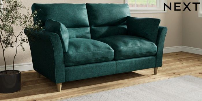 7.3.1 Buy Hartley Highback Relaxed Sit 3 Seater Small Sofa Plush Chenille Dark Teal Green Low Conical - Light from the Next UK online shop Click here to use our accessible website