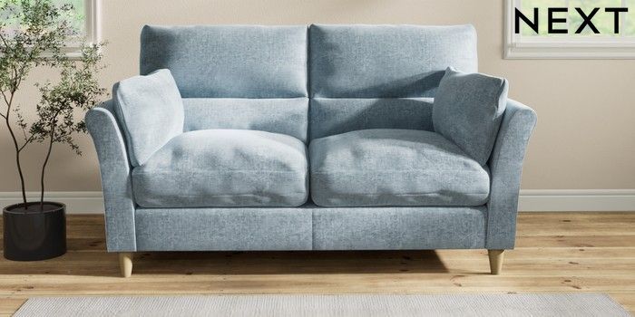7.2.6 Buy Hartley Highback Relaxed Sit 3 Seater Small Sofa Plush Chenille Light Blue Low Conical - Light from the Next UK online shop Click here to use our accessible website