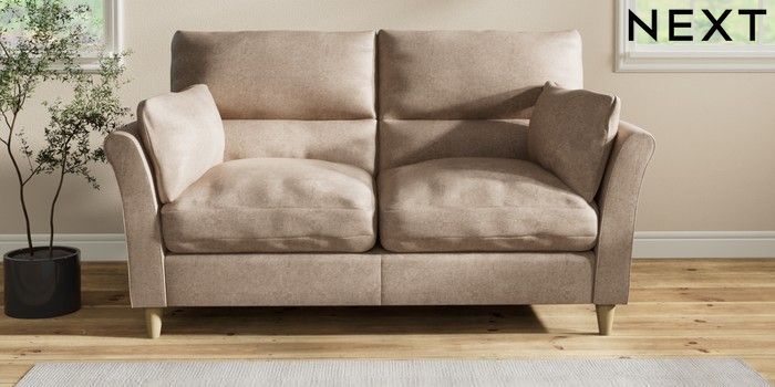 7.2.10 Buy Hartley Highback Relaxed Sit 3 Seater Small Sofa Plush Chenille Mid Natural Low Conical - Light from the Next UK online shop Click here to use our accessible website