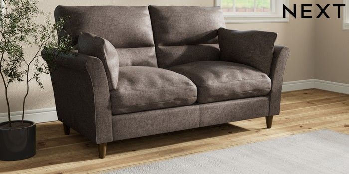 7.3.1 Buy Hartley Highback Relaxed Sit 3 Seater Small Sofa Plush Chenille Mink Brown Low Conical - Mid from the Next UK online shop