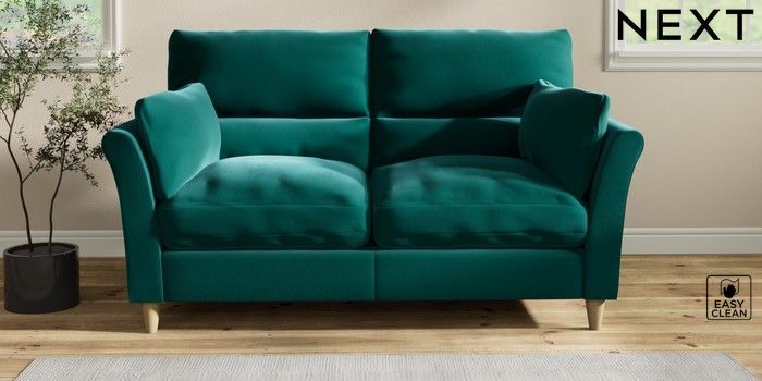 7.2.10 Buy Hartley Highback Relaxed Sit 3 Seater Small Sofa Plush Velvet Easy Clean Juniper Green Low Conical - Light from the Next UK online shop Click here to use our accessible website