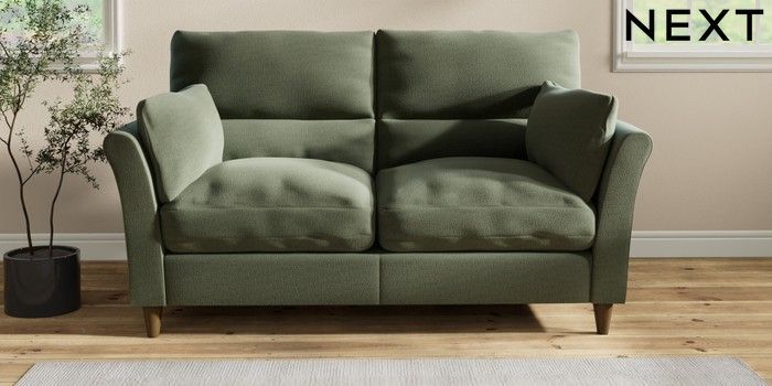 7.2.10 Buy Hartley Highback Relaxed Sit 3 Seater Small Sofa Relaxed Linen Look Dark Green Low Conical - Mid from the Next UK online shop Click here to use our accessible website