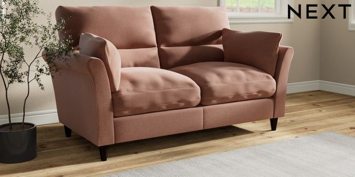 7.3.1 Buy Hartley Highback Relaxed Sit 3 Seater Small Sofa Relaxed Linen Look Light Rust Brown Low Conical - Dark from the Next UK online shop