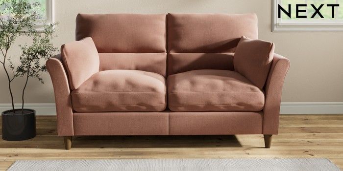 7.2.10 Buy Hartley Highback Relaxed Sit 3 Seater Small Sofa Relaxed Linen Look Light Rust Brown Low Conical - Mid from the Next UK online shop Click here to use our accessible website