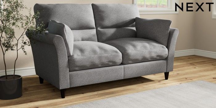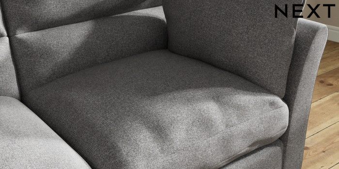 7.3.1 Buy Hartley Highback Relaxed Sit 3 Seater Small Sofa Studio Chenille Mid Grey Low Conical - Dark from the Next UK online shop