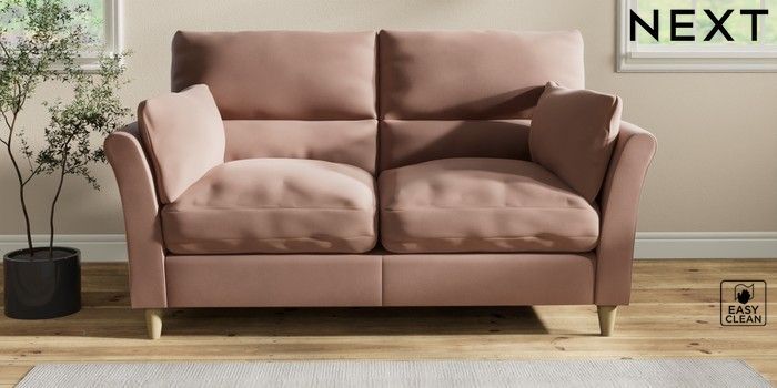 7.2.10 Buy Hartley Highback Relaxed Sit 3 Seater Small Sofa Plush Velvet Easy Clean Mid Natural Low Conical - Light from the Next UK online shop Click here to use our accessible website