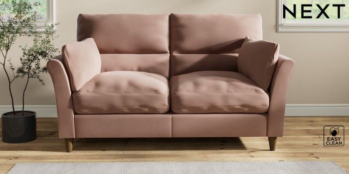 7.2.10 Buy Hartley Highback Relaxed Sit 3 Seater Small Sofa Plush Velvet Easy Clean Mid Natural Low Conical - Mid from the Next UK online shop Click here to use our accessible website